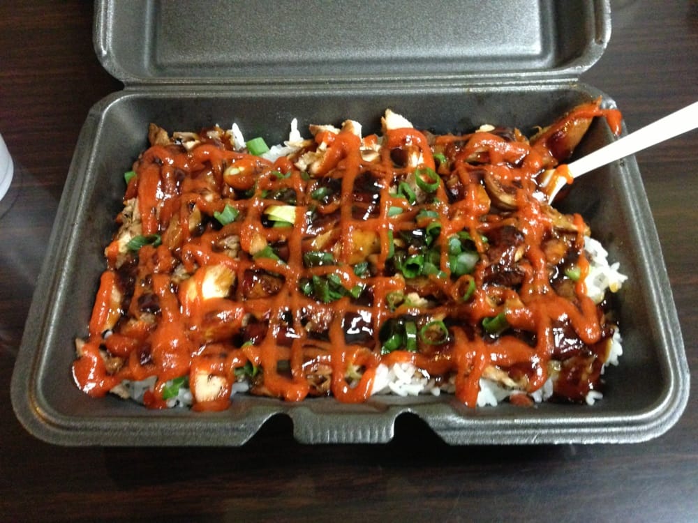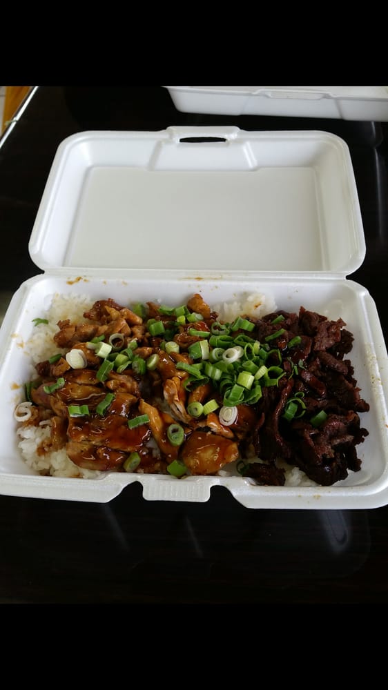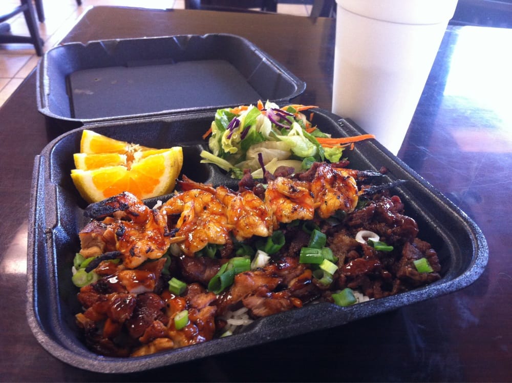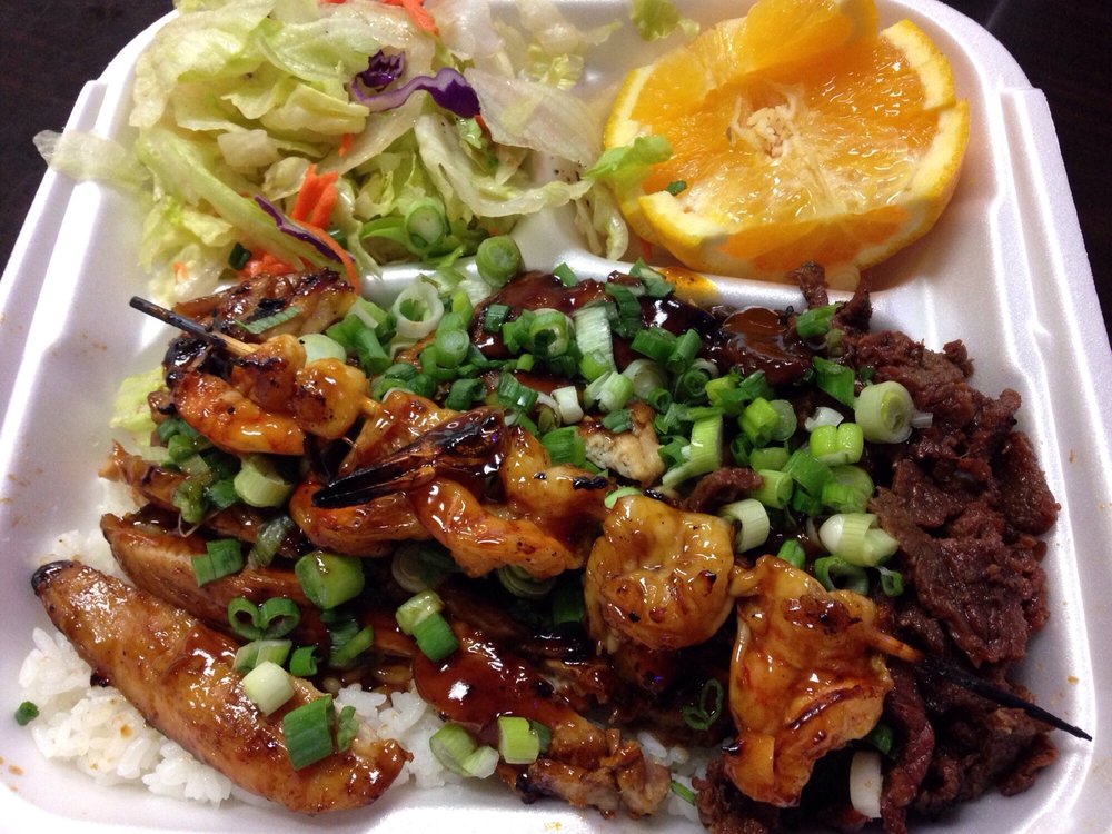 Grilled Chicken & Beef Teriyaki over Rice with Steamed Vegetables